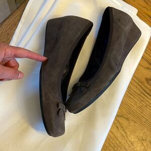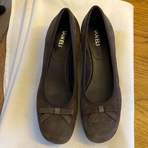 VANELLI BROWN SUEDE BOW LOW WEDGE SHOES. NEW WITHOUT TAGS. BEAUTIFULLY PADDED INSOLES