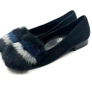 VANELi Edel Black Suede Combo Rabbit Fur Black Blue Gray Flat Slip On Flats 7.5W