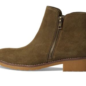 Stylish brown suede ankle boots with side zippers. Perfect for any occasion.