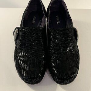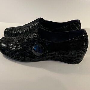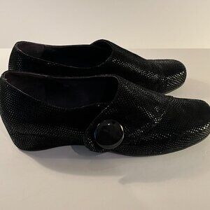 VANELi Maxy Black Suede Slip-On Low Wedge Loafers Shoes Button Detail Womens 9WW