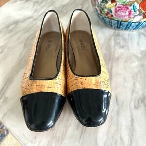 VANELi Tan Cork & Black Cap Toe Heeled Pumps
