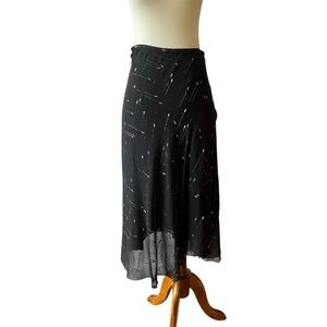 VANESSA BRUNO 100% SILK MIDI SKIRT ARTSY MIXED METALS ROMANTIC WHIMSYGOTH WITCHY