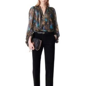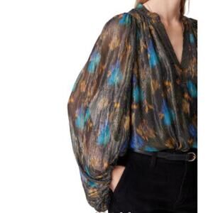 regular length, three-quarter-sleeved, all-over print, printed, split neck, blouses.