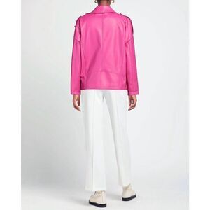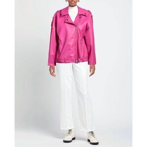 Details: coated fabric, no appliqués, solid color, lapel collar, single-breasted, long sleeves, unlined, buckle fastening, zipper closure, multipockets, biker style