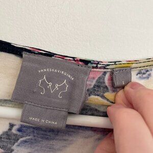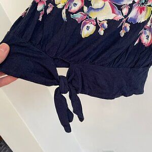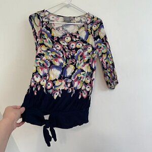VANESSA VIRGINIA Luxe Blossoms Tee Navy Multi Floral Tie Knot 3/4 Sleeve Blouse
