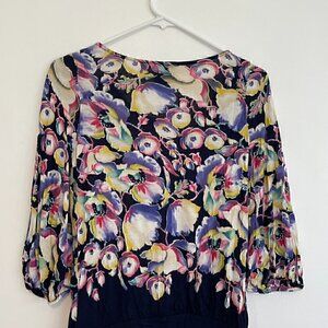 - navy blue / cream ivory ish / purple / pink / green / yellow / multi multicolor floral print