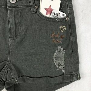VANILLA STAR Embroidered BABE Green Jean Shorts NWT 0