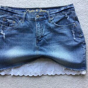 VANILLA STAR JEANS MINI SHIRT WITH WHITE RUFFLE SIZE 9