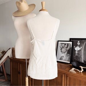 A beautiful, dainty and gorgeous lightweight slip-up cami with lace trimmed detail. Wear this as a day look with your favorite denim bottoms or a night look with a silky cream skirt. I love that it's so versatile for day and night.