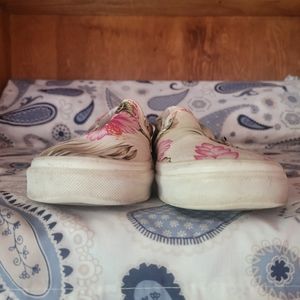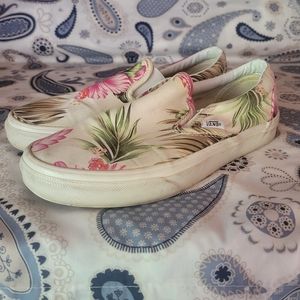 used no box WOMENS multi-color floral VANS slip on shoes sz7.5w - sz6m. still has plenty of life and can be worn for all seasons. condition 7/10