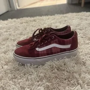 Maroon plaid vans in great condition size 9 super cute and comfy!