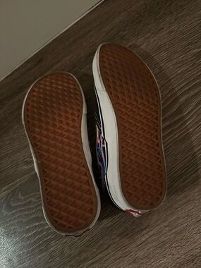Like new!! Wore less than 3 times! True to size, women’s 7.5. Some of the flame design glows in the dark!