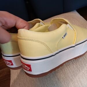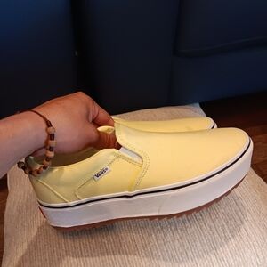 Brighten your look with Vans lemon slip-on sneakers. Features a stylish platform and easy slip-on design.