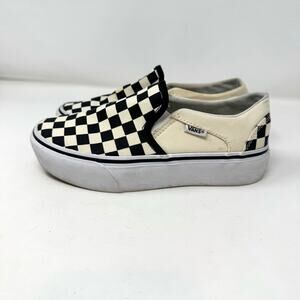 VANS Asher Slip On Platform Sneaker Shoes Womens 6 Checkerboard Black Cream