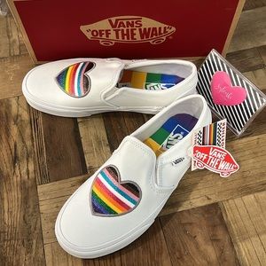 š VANS Asher Slip-on Shoes Rainbow Heart Womenās NWT