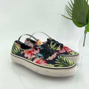 VANS Atwood Shoes Womens 7 Canvas Hawaiian Tropical Floral Black Multi Sneakers