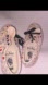 Fun Vans sneakers with vibrant icons on a cream base. Ideal for playful style. Some soil marks around leather