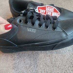 VANS Black Leather sneakers. Size 9 in women's or 7.5 in men's. brand new with tags.