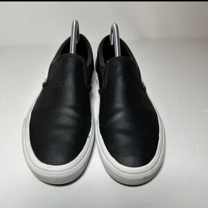 VANS Black Perforate Leather Slip On skate Shoes 721278 Men's 8 Women's 9.5 see pictures for reference