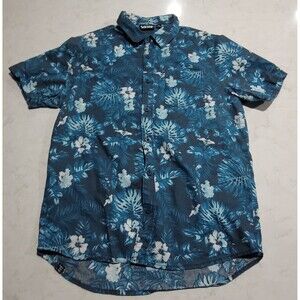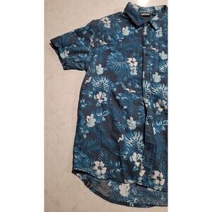VANS Blue Button Up Floral Hawaiian Camp Shirt Small NWOT