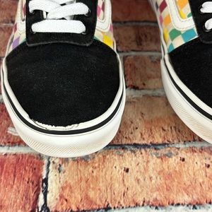 SELLING A NICE PAIR OF WOMANS SIZE 6.5, VANS CLASSIC CHECKERBOARD LOWTOP SHOES, THE COLORS ARE BLACK WITH MULTI COLORED CHECKERBOARD PATTERN UPPERS, WHITE SOLES AND MATCHING WHITE LACES, THE CONDITION IS GOOD USED OVERALL WITH SOME VISUAL WEAR ALL SHOWN IN PICTURES, PLEASE FORWARD ANY QUESTIONS YOU MAY HAVE, BUNDLE UP AND SAVE OR REASONABLE OFFERS ALWAYS CONSIDERED THANKS FOR SHOPPING MY CLOSET AND HAVE A GREAT DAY ๐