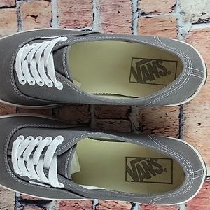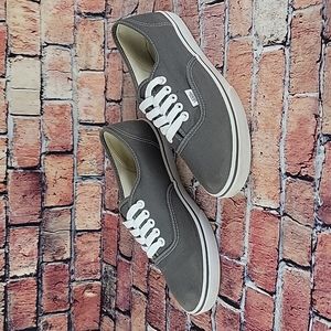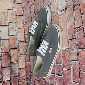 SELLING A GREAT PAIR OF WOMANS SIZE 7.5 VANS CLASSIC LOWTOP SHOES, THE COLORS ARE GRAY CANVAS UPPERS WITH WHITE SOLES AND MATCHING WHITE LACES, THE CONDITION IS EXCELLENT USED WITH ONLY MINIMAL, TYPICAL WEAR AS SHOWN IN PICTURES, PLEASE FORWARD ANY QUESTIONS YOU MAY HAVE, BUNDLE UP AND SAVE OR REASONABLE OFFERS ALWAYS CONSIDERED THANKS FOR SHOPPING MY CLOSET AND HAVE A GREAT DAY ๐ ๐