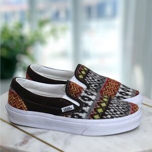VANS CLASSIC SLIP ON Fair Isle Brown Multi Sneakers Shoes Size 4 Men 5.5 Women