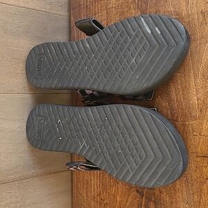 pre-loved, gently worn, good condition. 2 straps with hook and loop closure, padded straps, soft foam footbed, looks like sole may be lifting at toes(see pic) other than that they are in great condition.