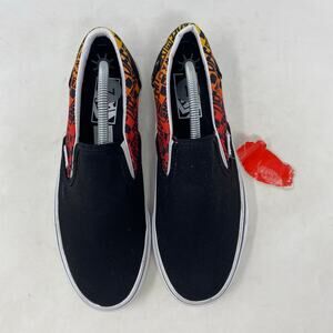 VANS Classic Slip-On Logo Flame Black Skate Shoes Womens Size 8.5