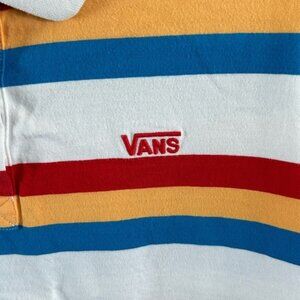 VANS Colorful Striped Cropped Polo Shirt Top Red Yellow Blue Sz Small