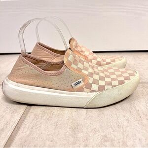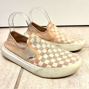 VANS Comfycush One Slip On women’s Size 9.5M Subtle Checker Peach White Barbie.