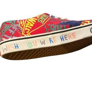 Step up your shoe game with these one-of-a-kind custom Vans sneakers! Featuring a vibrant graffiti-style design, these shoes are sure to turn heads wherever you go. They are in great condition and ready for a new home.