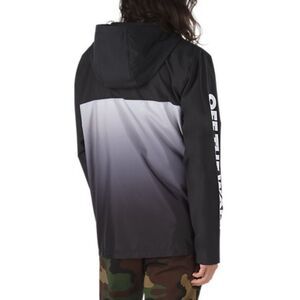 The Hi-Point Anorak is a 100% polyester packable anorak with an on-seam front zipper pocket, a colorblock design and fade print, logo graphics at the sleeve, and a woven silicone label at the left chest.