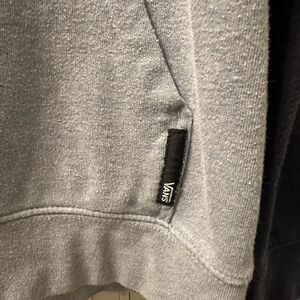 Show your love for skateboard with this VANS hoodie, featuring a large logo spellout on the chest. The blue color and graphic print along with a crew neck, long sleeves, and a zip closure make it a stylish yet comfortable addition to your wardrobe. Made from knit fabric and machine washable, this hoodie is perfect for all seasons and suitable for skateboarding or any other activity. The hoodie is regular fit and available in size M, 23" pit to pit and length 27" with a hood for extra warmth and accent logos. Get this pullover hoodie, a must-have for any skateboarder, and enjoy skating in style. Excellent condition. No rips/holes/tears/stains/discoloration/snags. Kept in a smoke/pet free home.