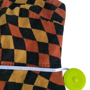 The fabric is 100% cotton in checkered or harlequin-shaped fall earth colors.