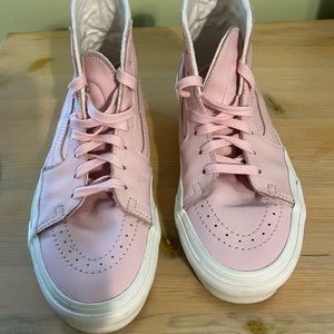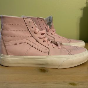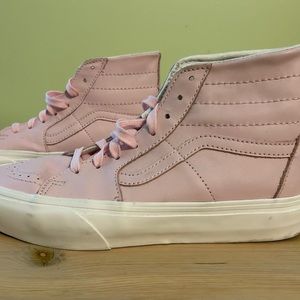 Vans Light Pink Leather hi-tops.