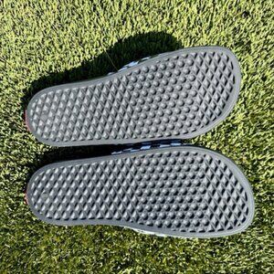 For sale: VANS La Costa Unisex Slides, Black/Checkerboard, Men's 9, in nearly new condition with no significant wear from a smoke-free home.
