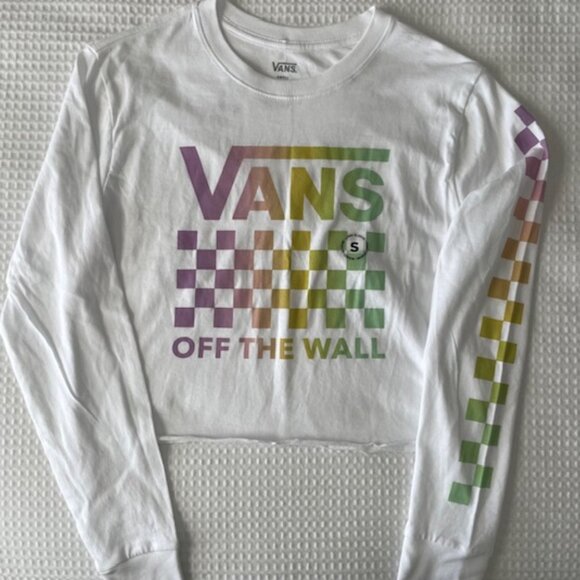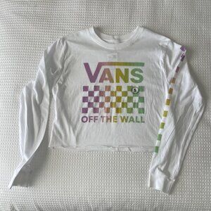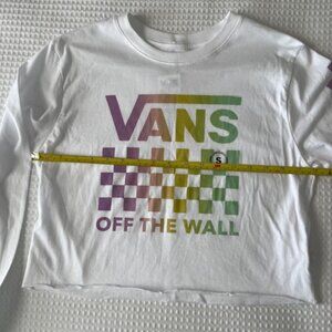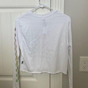 VANS Lock Box White Long Sleeve Cropped T-shirt. Graphic front and one sleeve. - NWT
