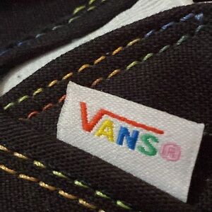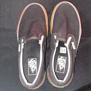 VANS MENS SIZE 7.5 WO size 9 SLIP ON LOAFER SHOE BLACK LOW PLATFORM HEEL GLITTERY RAINBOW COLORS NWOT EXCELLENT CONDITION