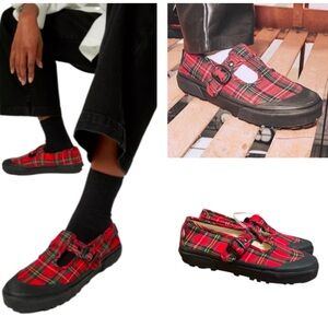VANS Mary Jane Sneakers Tartan Plaid red black Size 7.5 wmns