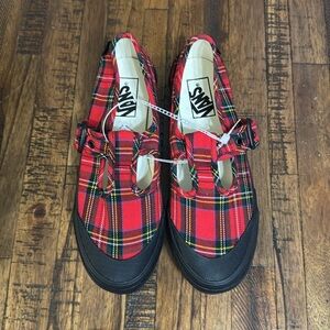 VANS Mary Jane Sneakers NWT Tartan Plaid red black womens Size 7.5