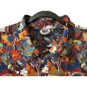 VANS Mens Size Medium Tropical Palm Tree Party Mesh Button Up Shirt Multicolor