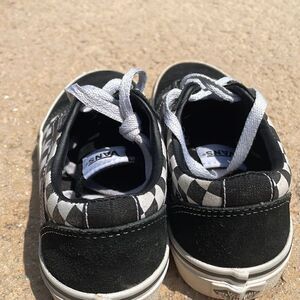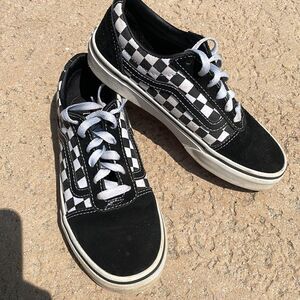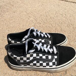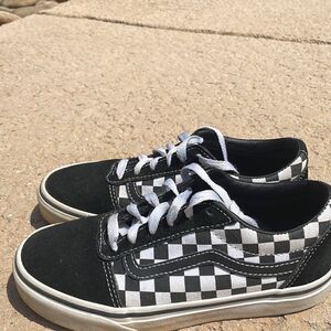 VANS OFF THE WALL Youth Size US 3 Black & White Checkered Suede SKATE Canvas. Good Used Condition - See photos for wear
