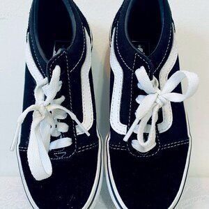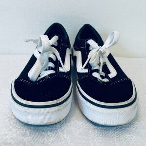 VANS low top classic "Off The Wall" shoes, black and white, suede and canvas, size youth 13.