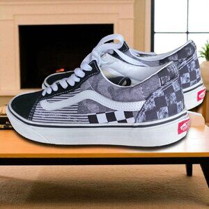 VAN'S OLD SKOOL (7.5//9) Unisex Low Skate Black Gray White Canvas Leather Trim