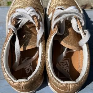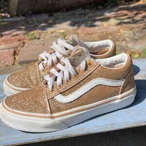 VANS OLD SKOOL GLITTER GOLD SHOES LACE UP KIDS SIZE 2