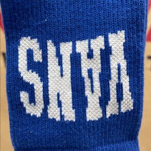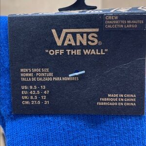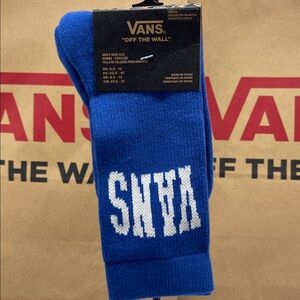 Bold royal blue socks featuring the iconic Vans logo in white. Comfortable crew style.