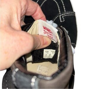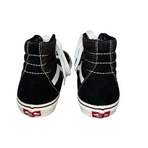 Vans Off the Wall Sk8 Hi Sneaker in Size 7 Men's / 9 Women's . Black Suede and Canvas Upper. Minimal Wear on the soles. Good Condition. Have been washed and have new shoelaces.
