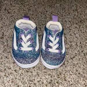 VANS Old Skool Baby Girl Crib Shoes Ombre Glitter Blue & Purple Size 1