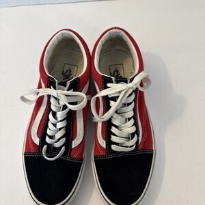 VANS Old Skool Black Red/Suede Canvas Off The Wall Size M/8 W/9.5